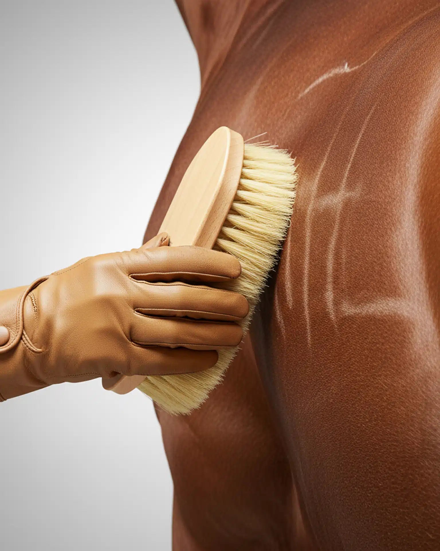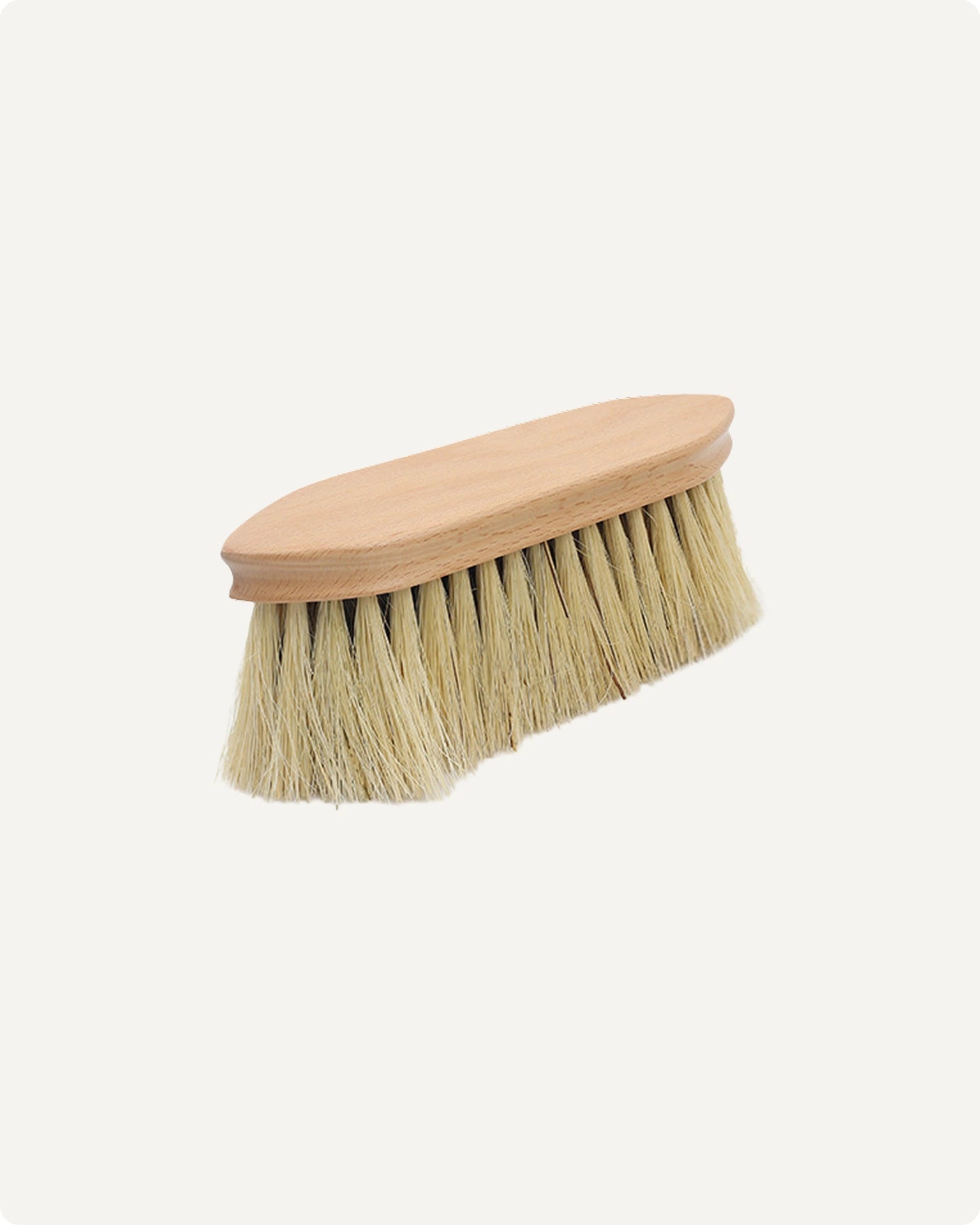 Featuring a sophisticated dual-fiber design, this brush offers unparalleled versatility. The high-density center, composed of stiff natural union fibers (coir), excels at lifting stubborn mud, dried sweat, and deep-seated dander. Surrounding this is a border of softer, anti-static natural Tampico (sisal) bristles, which effortlessly sweeps away surface dust and polishes the topcoat for a show-ready finish.