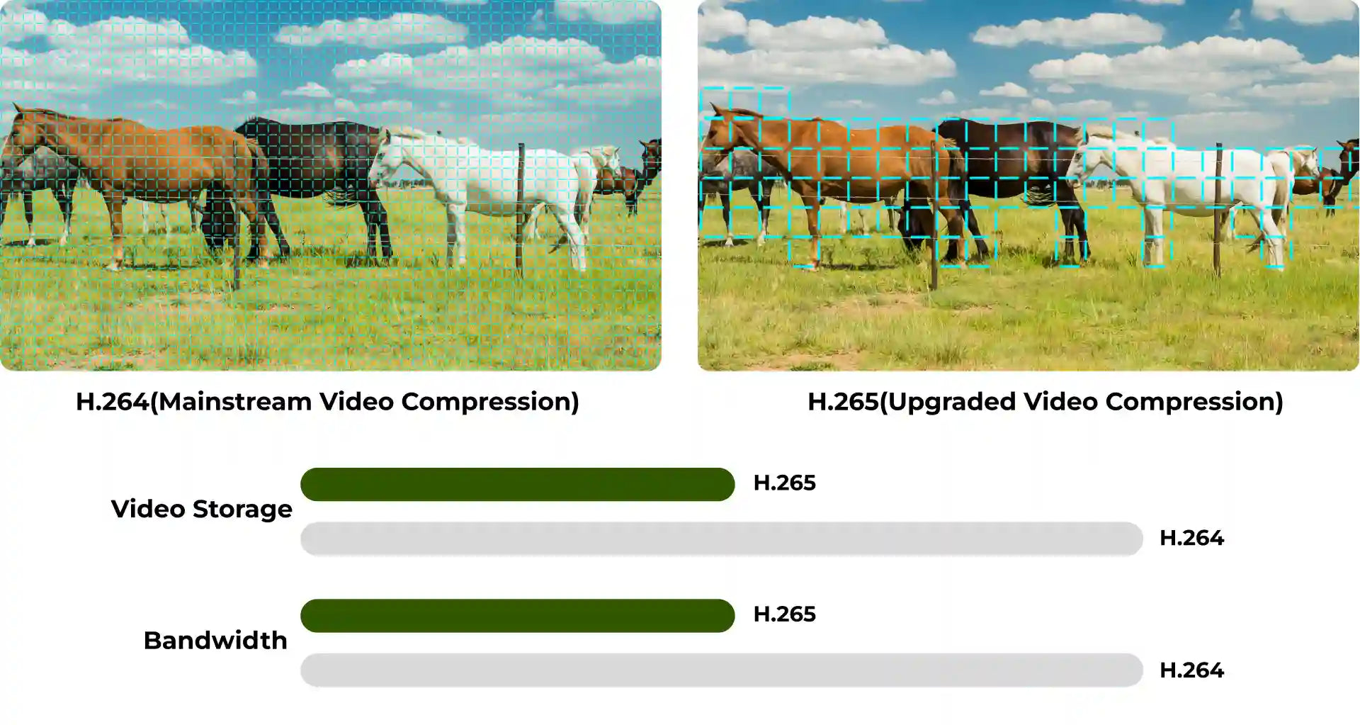 Amouu camera uses cutting-edge H.265 compression technology, delivering superior video quality while using only half the bandwidth and storage of the older H.264 standard.