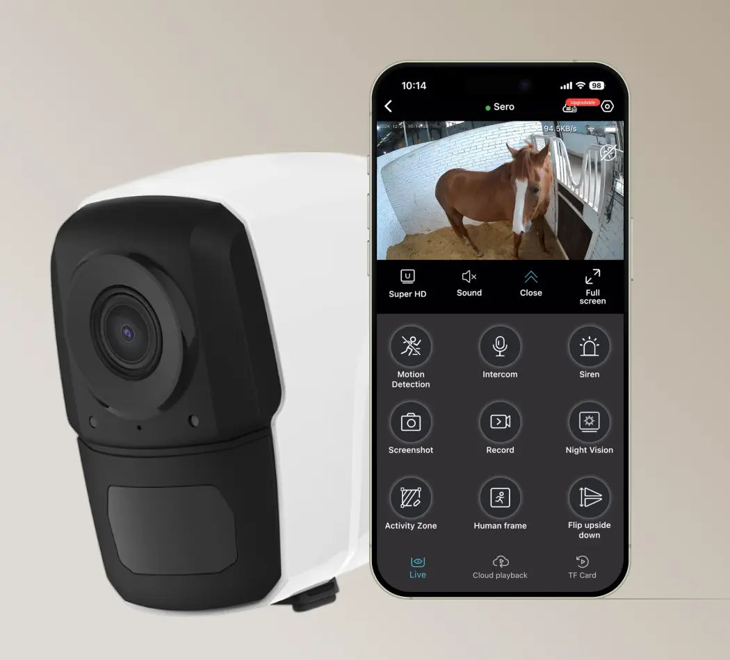 Sero 4G is your all-in-one wireless camera for stables, trailers, and paddocks—monitor horses in transit, watch foaling, or secure sheds and gates.